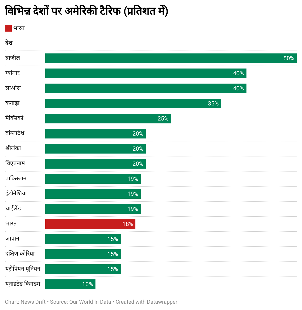 अमेरिका ने भारतीय सामानों पर अपना टैरिफ 50% से घटाकर 18% किया