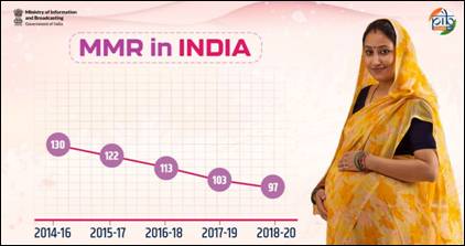 सैंपल रजिस्ट्रेशन सिस्टम (SRS) के अनुसार, असम में MMR 215 से घटकर 110 और उत्तर प्रदेश में 197 से घटकर 141 पर आया है, जो अभी भी SDG लक्ष्य (70 से नीचे) से काफी अधिक है।