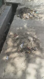 - नालियों का मलबा सूख कर उड़ कर घरों में पहुँच रहा और सड़क पर फ़ैल रहा